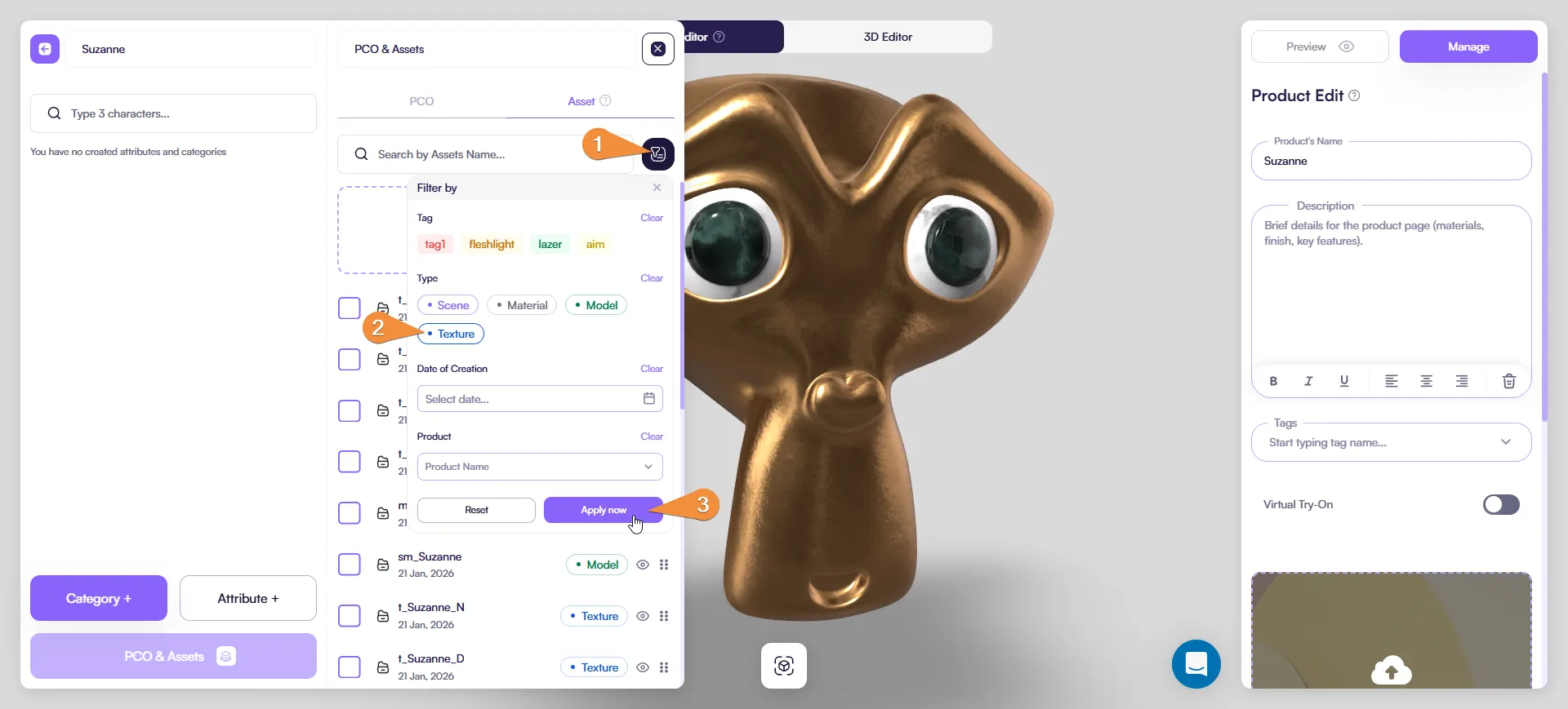 After upload, assets appear immediately in the Assets list and can be reused across the product.