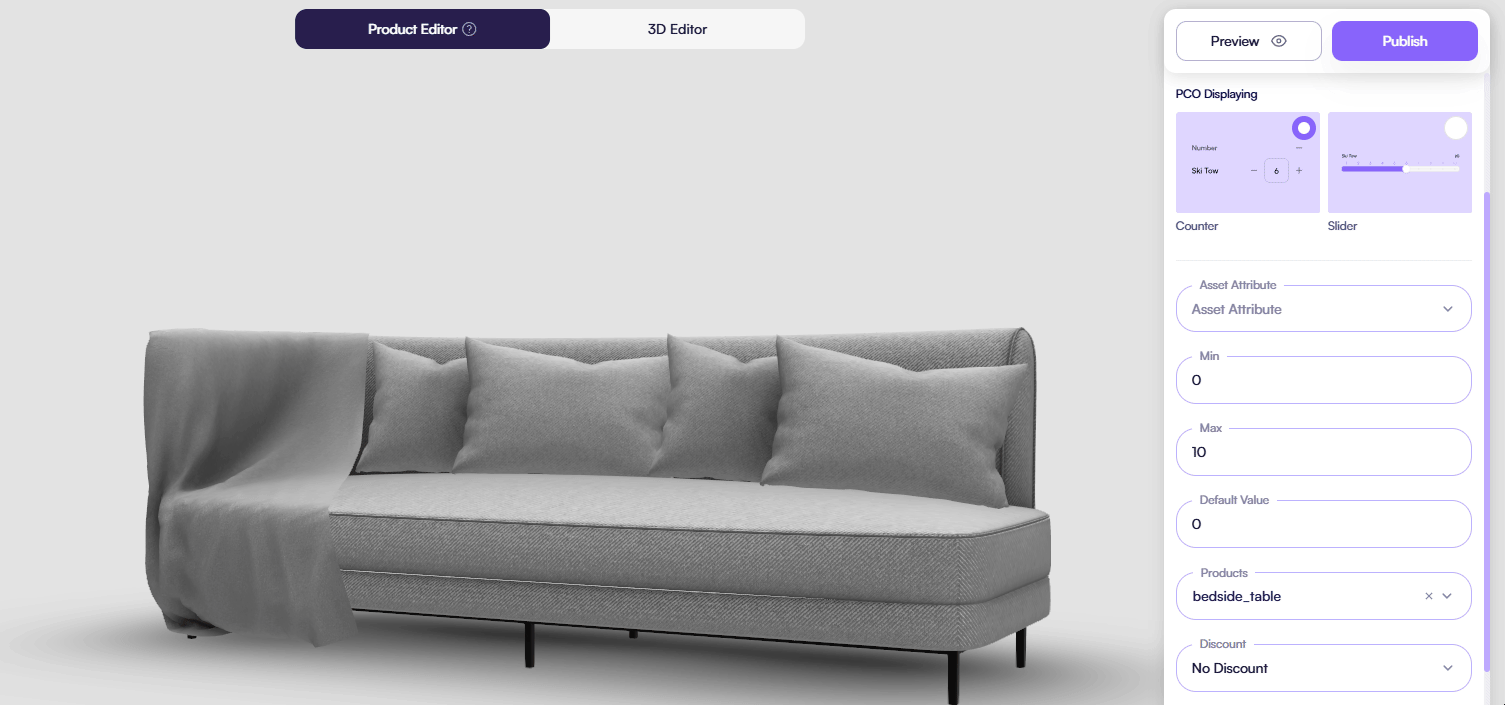 The Number attribute adds a hotspot above the model in the 3D scene to display the selected quantity.