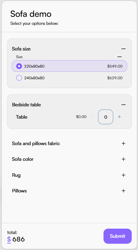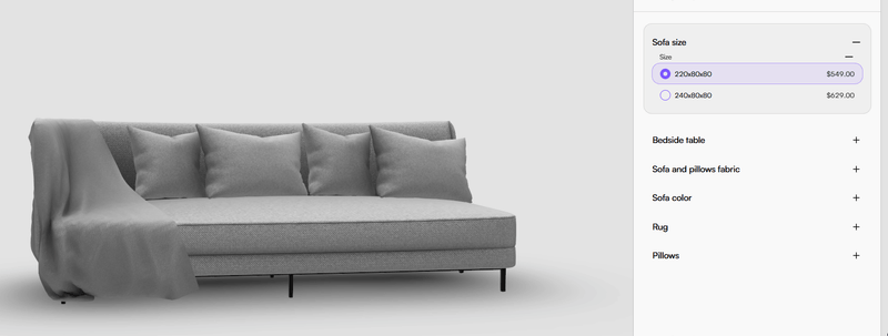- The total product price recalculates automatically