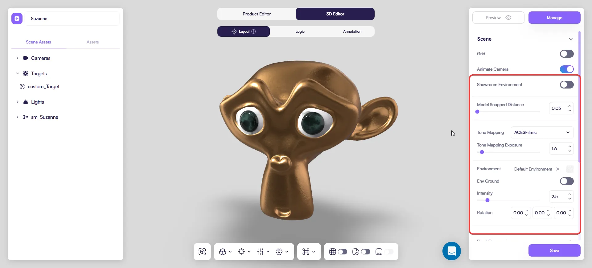 This article explains how to select an environment preset and fine‑tune intensity, rotation, and ground inside the 3D Editor.