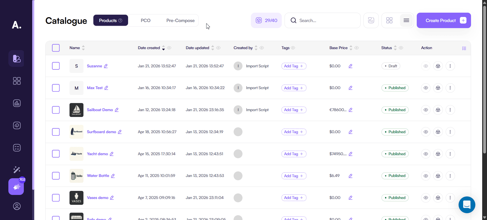 Material setup workflow