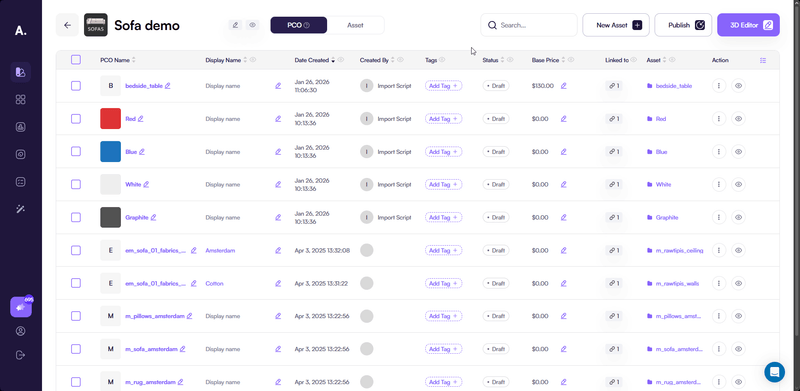 At the core of the integration is the EditorConstructor component. It renders the 3D scene and connects it to your product or asset stored in Amaspace.