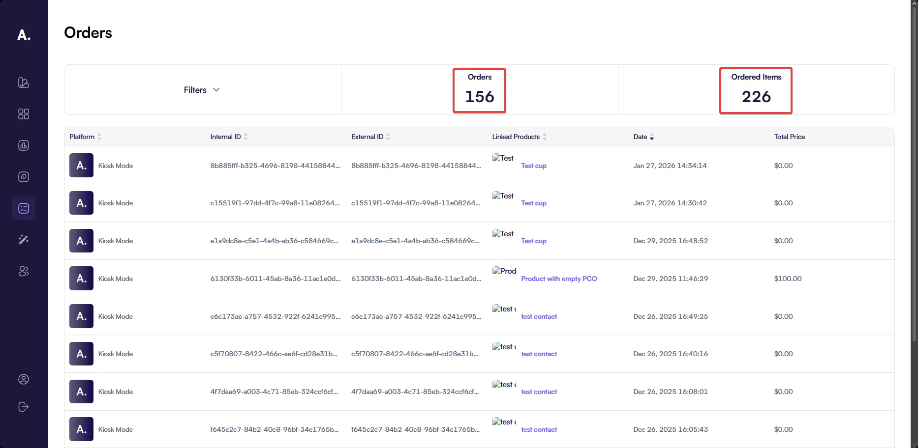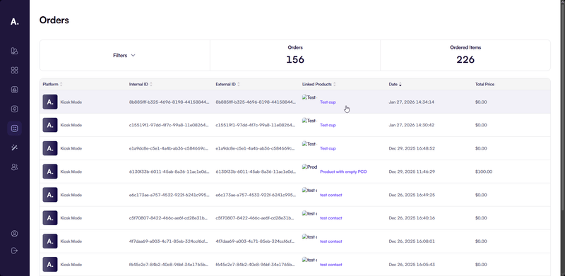 Orders are stored in Amaspace and, when an integration is connected, also created in the external platform.